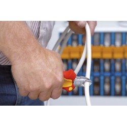 La pince coupante diagonale également comprise dans le jeu séduit en tant que pince coupante universelle pour la découpe de fils mous et durs. La construction articulée spéciale DynamicJoint® réduit par ailleurs l'effort à fournir lors de la découpe.