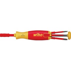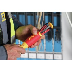 Le tournevis avec magasin d’embouts LiftUp electric est le compagnon idéal pour tout électricien en déplacement. Le rangement d’embouts situé dans le manche peut accueillir 6 embouts slim courants qui sortent du magasin sur simple pression d’un bouton.