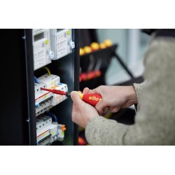 Le porte-embout isolé ClicFix garantit un maintien sécurisé des embouts slim de 75 mm grâce à un verrouillage mécanique. Le tournevis et les embouts slim sont testés individuellement selon la norme CEI 60900, autorisant une utilisation sur des composants sous tension jusqu’à 1 000 V AC.