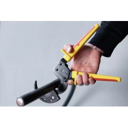 Conçue pour une utilisation à une seule main, cette pince est dotée de poignées souples, ergonomiques et antidérapantes, garantissant une prise en main confortable. En cas de besoin, la fonction de déverrouillage de secours permet d’interrompre manuellement le processus de coupe à tout moment et de retirer le câble du taillant.
