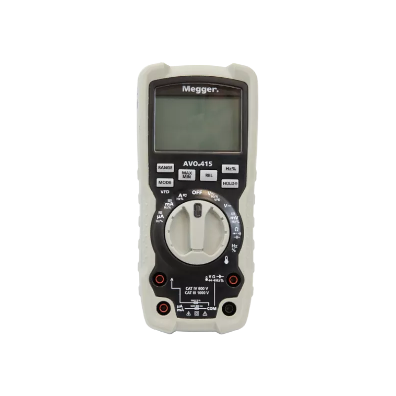 Le multimètre numérique True-RMS AVO415 est conforme aux catégories de sécurité CAT IV 600 V/CAT III 1 000 V et à l'indice de protection IP67. Il est fourni avec des fonctionnalités avancées telles que la mesure de VFD.