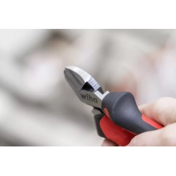 Pour couper des fils tendres et durs, tout artisan doit disposer d’un outil de coupe universel. La pince coupante diagonale Industrial de Wiha est une pince polyvalente robuste offrant de nombreuses utilisations possibles. L'articulation de la pince avec DynamicJoint® assure une transmission optimale de la force manuelle sur les lames et une force de coupe jusqu'à 40 % plus élevée. Cette pince précise avec une forme de tête semi-ronde assure en outre une arête de coupe nette. Les poignées ergonomiques de la pince garantissent un travail confortable et sans fatigue. Les taillants trempés par induction à environ 64 HRC et l’acier à outils C 70 de haute qualité permettent d’obtenir une longue durée de vie.
